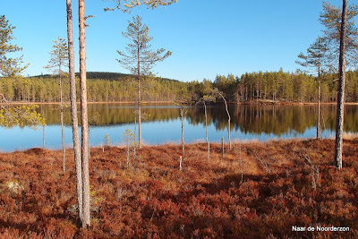 En zo trokken we er gisteren op uit om even hoognodig bij te tanken. Na een dik uur noordwaarts te hebben gereden, parkeerden we de auto om te voet het bos in te trekken. Het was prachtig weer. Het vroor licht, de zon scheen volop en er stond een licht briesje. Omdat de vorst al een klein beetje in de grond zat, waren ook de normaal gesproken drassige stukken door het moeras goed begaanbaar. Alles bij elkaar - soms stevig doorstappend, maar ook veel slenterend en regelmatig pauzerend om van het uitzicht te genieten - deden we een kleine twee uur over onze wandeling. Daarna genoten we van de meegenomen broodjes en warme chocolademelk. Uiteraard hadden we ook voor Jeanny iets lekkers bij ons. Pas toen het al lang weer donker was, waren we weer thuis. Het was een heerlijke dag!