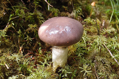 De tijd vliegt. Na een tropische periode volgde een periode met veel regen. En als we de weersverwachting mogen geloven, dan komt er nu een periode aan waarin de zomer en de herfst om de macht gaan strijden. De zomer is nog niet voorbij, maar aan alles is te merken dat het einde ervan in zicht is. De nachten worden kouder - afgelopen week twee keer slechts enkele graden boven het vriespunt - en om de temperatuur in huis aangenaam te houden, hebben we al enkele avonden op rij de houtkachel moeten stoken. Ook in de natuur is te zien dat de herfst op komst is. De eerste bladeren aan de bomen beginnen geel te verkleuren en op veel plaatsen in het bos struikel je bijna letterlijk over allerlei fraai gekleurde paddenstoelen. Wat te denken van onderstaand exemplaar dat met gemak het formaat van een ontbijtbord heeft...